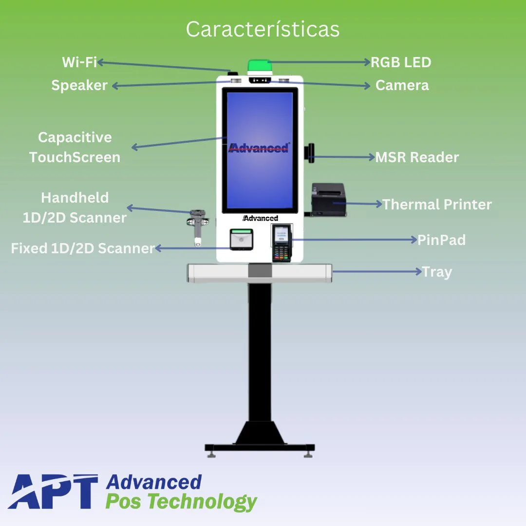 El APT-ASSC04 de ADVANCED POS Technology es una solución de autoservicio que redefine la eficiencia en puntos de venta. Su pantalla táctil de 24 pulgadas, combinada con un potente procesador Intel Core i5 de 8ª generación, ofrece una experiencia fluida, moderna y confiable. Ideal para supermercados, tiendas, restaurantes y kioscos que buscan agilidad, diseño y rendimiento.