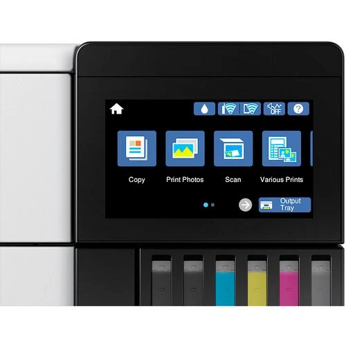 Una pantalla táctil a color de 4,3″ ofrece un rendimiento rápido y fácil, y también admite la impresión activada por voz. Listo para dispositivos móviles, puede imprimir, escanear y más con la aplicación Epson Smart Panel, que le permite monitorear y operar su impresora directamente desde su dispositivo móvil iOS o Android. Además, se proporciona una ranura para tarjeta SD y un puerto USB para la impresión directa. Para escanear, un escáner plano de 8,5 x 11,7″ ofrece escaneos de alta resolución de hasta 4800 x 1200 ppp, y la unidad le permite recuperar a 99 copias a la vez.