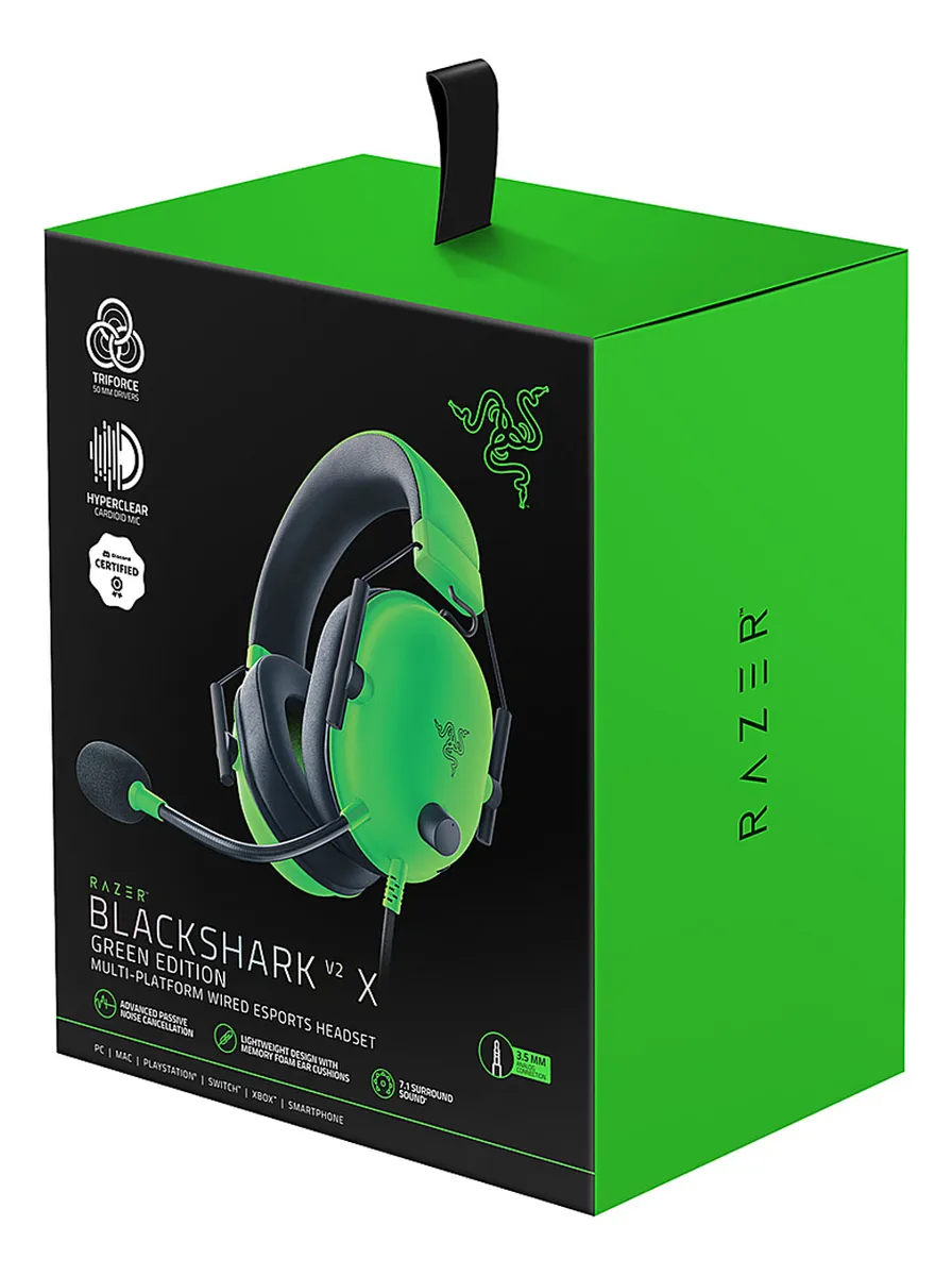 Los Razer BlackShark V2 X son auriculares gaming diseñados para ofrecer una experiencia de juego inmersiva con sonido envolvente 7.1, conectividad flexible y comodidad superior. Con tecnología Razer™ TriForce y micrófono HyperClear, permiten jugar en cualquier plataforma sin compromisos.